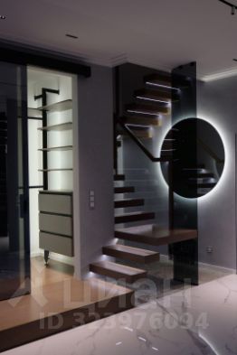 • Элегантная парящая лестница из массива дуба с подсветкой.