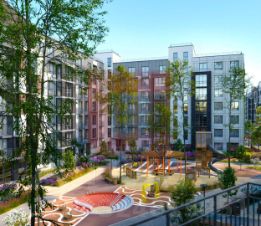Комплексная концепция благоустройства общественных пространств Концепция "дом-отель" предполагает единое пространство комфорта и общий стиль без границ и контрастов во всём пространстве жилого комплекса "Аэро" — от дверей вашей квартиры до входных групп и зон отдыха. Дворы без машин с авторским озеленением и функциональным зонированием учитывают предпочтения всех жителей комплекса.