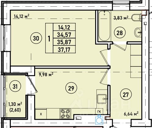 Продаётся 1-комнатная квартира в строящемся доме (Дом 1), срок сдачи: III-кв. 2026, общей площадью 35.87 кв.м., на 4 этаже. Современный жилой 7-ми этажный дом в сердце города.