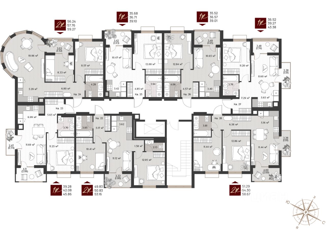 -В клубном доме 34 эксклюзивных лотов разных форматов: одно-, двух-, комнатные и просторные двухуровневые квартиры.