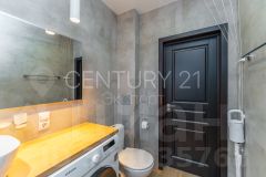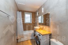 Стильная плитка, удобная ванна, глубокая раковина, стиральная машина. Все детали продуманы.