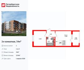 Удобная, классическая, функциональная европланировка, большая кухня-гостиная 14 м², вместительная прихожая 2.9 м². Общая площадь квартиры - 34 м², жилая 10.9 м², высота потолка 2.7 м.