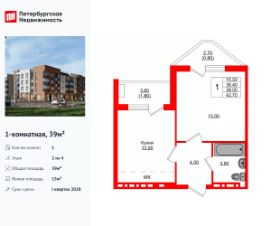 Удобная, классическая планировка, кухня 13 м², просторная прихожая 4.5 м². Общая площадь квартиры - 39 м², жилая 15 м², высота потолка 2.7 м.
