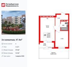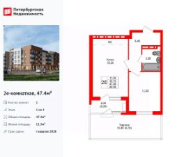 Удобная, классическая, функциональная европланировка, большая кухня-гостиная 19.2 м², просторная прихожая 6.4 м². Общая площадь квартиры - 47.4 м², жилая 11.5 м², высота потолка 2.7 м.