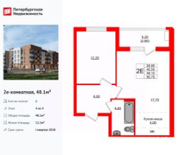 Удобная, классическая, функциональная европланировка, большая кухня-гостиная 22.7 м², просторная прихожая 6 м². Общая площадь квартиры - 48.1 м², жилая 12.2 м², высота потолка 3 м.