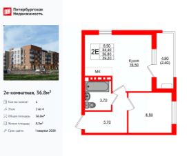 Удобная, классическая, функциональная европланировка, большая кухня-гостиная 16.5 м², просторная прихожая 5.7 м². Общая площадь квартиры - 36.8 м², жилая 8.5 м², высота потолка 2.7 м.
