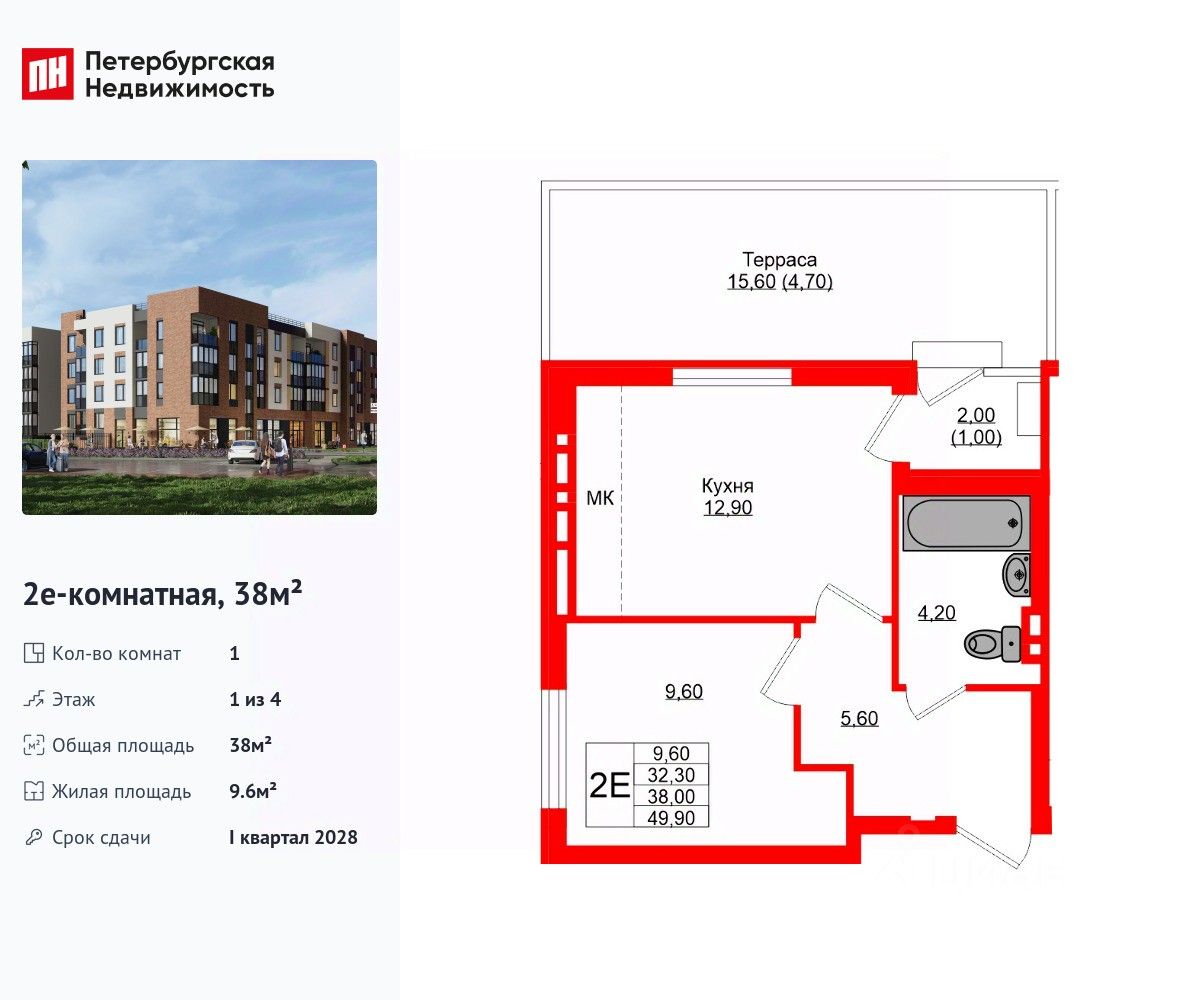 Удобная, классическая, функциональная европланировка, большая кухня-гостиная 12.9 м², просторная прихожая 5.6 м². Общая площадь квартиры - 38 м², жилая 9.6 м², высота потолка 2.7 м.