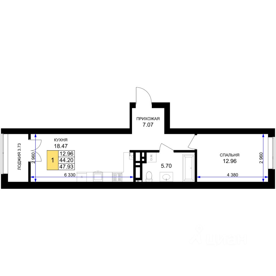 Продаётся 1-комнатная квартира в строящемся доме (Дом 10 (3 очередь)), срок сдачи: III-кв. 2027, общей площадью 47.93 кв.м., на 4 этаже. Новый жилой комплекс "Включи" от застройщика "СпецСтройКубань" расположен в г. Гурьевск в районе Гурьевского шоссе.