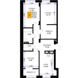 Продаётся 3-комнатная квартира в строящемся доме (Дом 4 (1 очередь)), срок сдачи: I-кв. 2026, общей площадью 79.64 кв.м., на 6 этаже. Новый жилой комплекс "Включи" от застройщика "СпецСтройКубань" расположен в г. Гурьевск в районе Гурьевского шоссе.