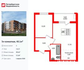 Удобная, классическая, функциональная европланировка, большая кухня-гостиная 22.7 м², вместительная прихожая 6 м². Общая площадь квартиры - 48.1 м², жилая 12.2 м², высота потолка 2.7 м.