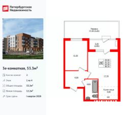 Удобная, классическая, функциональная европланировка, большая кухня-гостиная 22.7 м², вместительная прихожая 6 м². Общая площадь квартиры - 53.3 м², жилая 12.2 м², высота потолка 2.7 м.