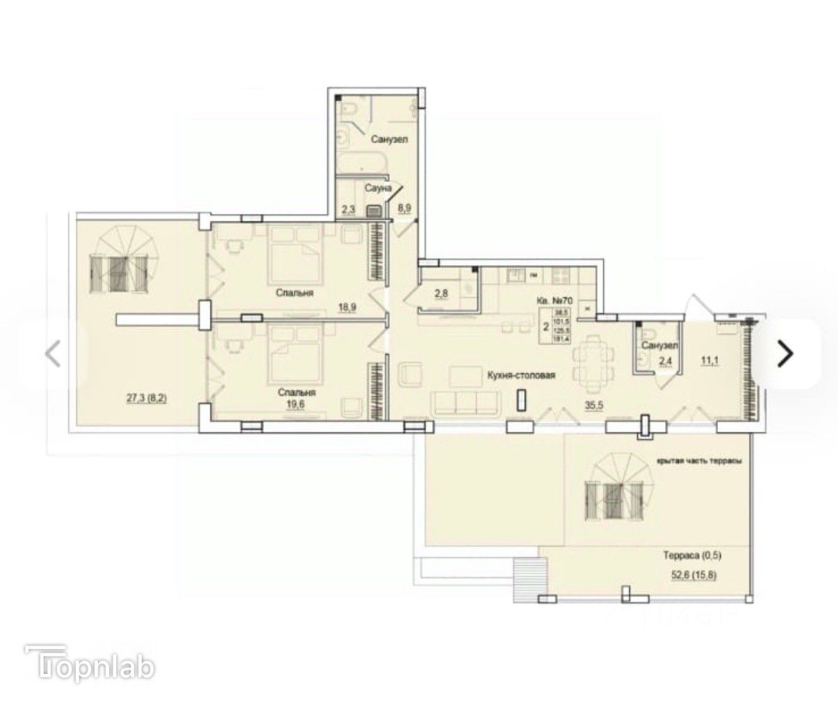 Две большие террасы, мастер-спальня, два санузла, сауна/баня, гардеробная