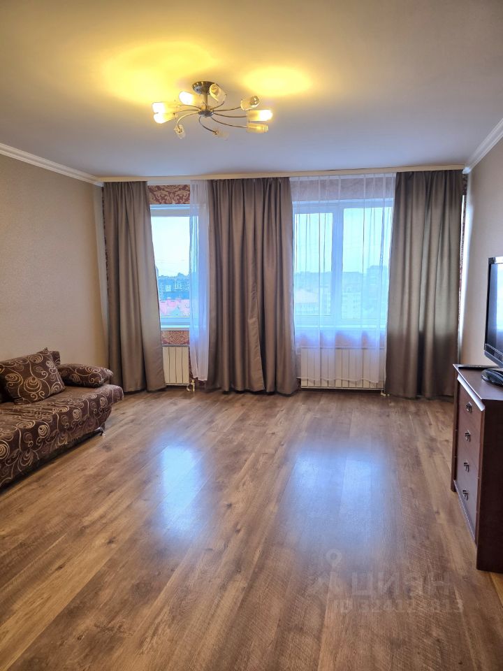 В географическом центре города Калининграда, в Ленинградском районе по улице Гагарина, 99 предлагается к продаже однокомнатная квартира площадью 47,9 м кв на тринадцатом этаже одноподьездного 24-этажного монолитного дома 2012 года постройки.