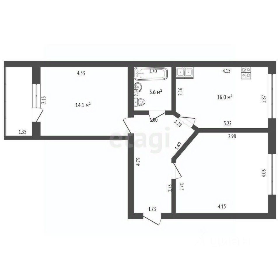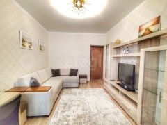 Планировка функциональна: изолированные комнаты, совмещенный санузел и просторная кухня 16 м², которую можно использовать как дополнительное жилое пространство. Высота потолков 2.9 метра создает ощущение простора. Квартира имеет качественный евроремонт и полностью укомплектована для комфортного проживания: встроенная кухня, мебель для хранения вещей и спальные места, а также вся необходимая техника, включая холодильник и стиральную машину. Дополнительный комфорт обеспечивает система теплых полов на кухне и в коридоре. Утепленная лоджия с розеткой и освещением оснащена шкафом-купе.