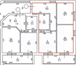- Общая площадь с холодными помещениями с коэф. 0.5 55.7 м2, общ. площадь без холодных помещений 51.6 м2, жилая 24.6 м2, кухня 11.0 м2, большая прихожая 11.0 м2.