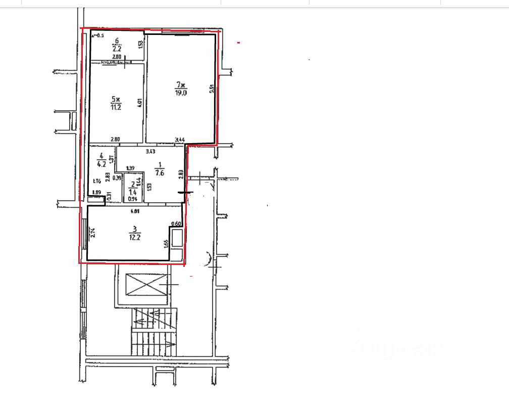 Жилая площадь: 31,2 кв.м. (изолированные комнаты 19,0+11,2 кв.м.).