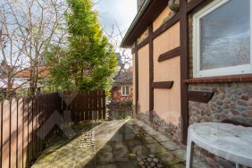 Эта двухкомнатная квартира расположена на первом этаже немецкого особняка в одном из самых уютных районов Калининграда, на пересечении Каштановой аллеи и улицы лейтенанта Яналова. Она предлагает уникальное преимущество прямой выход из квартиры на собственную террасу в тенистом заднем дворе.