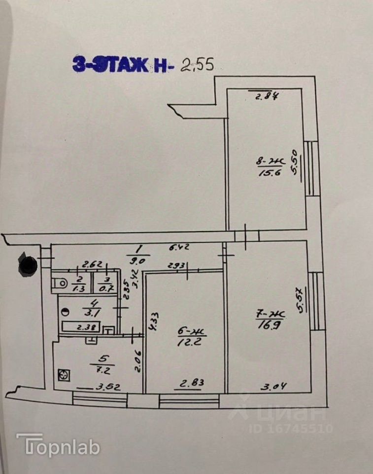 Общая площадь квартиры составляет 66 квадратных метров. Просторная кухня площадью 7 кв.м. станет местом для ваших кулинарных шедевров, а три смежно-изолированные комнаты (17, 15 и 12 кв.м.) позволят каждому члену семьи иметь свое личное пространство. Большой холл площадью 9 кв.м. создает ощущение простора и комфорта, а раздельный санузел добавляет удобства.