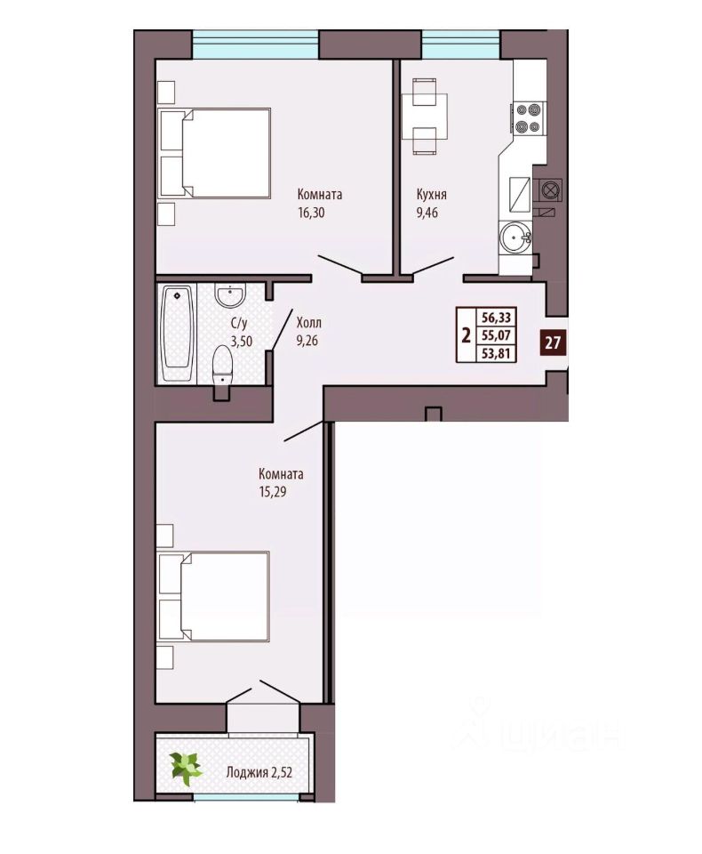 Общая площадь55 м²