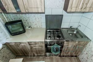 В квартире выполнен стандартный косметический ремонт, установлен кухонный гарнитур, есть газовая плита.