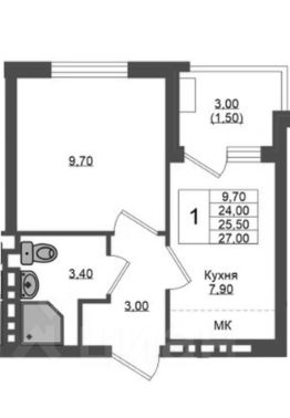В квартире есть просторная кухня площадью 7,9 кв.м., где вы сможете создать уютное место для семейных обедов и встреч с друзьями. Жилая площадь составляет 9,7 кв.м., что позволяет организовать пространство максимально эффективно. Совмещенный санузел добавляет удобства и практичности.