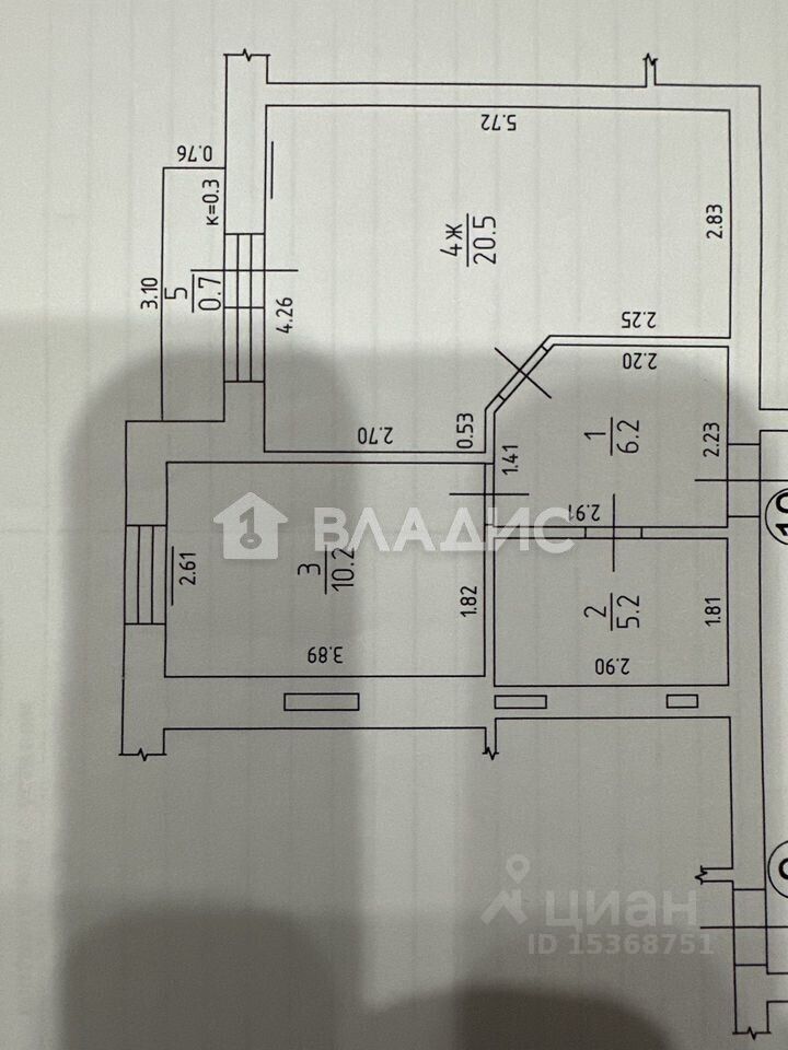 Общая площадь квартиры: 42,1 кв.м, площадь комнаты 20,5 кв.м, площадь кухни 10,2 кв.м, комната с панорамными окнами и выходом на балкон.