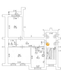 - Комнаты изолированные, на разные стороны. Гостиная с двумя окнами, просторная, светлая, 22,4 м.кв. Спальня с открытым балконом 17,9 м.кв.