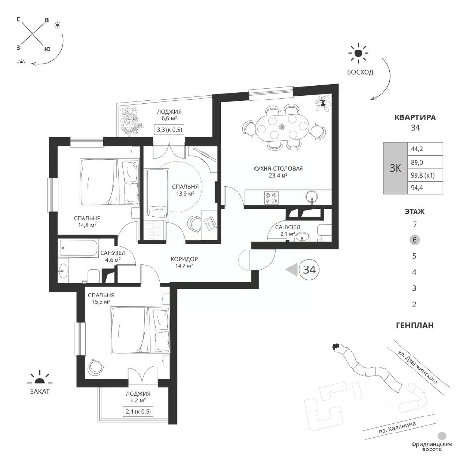 Общая площадь94,4 м²