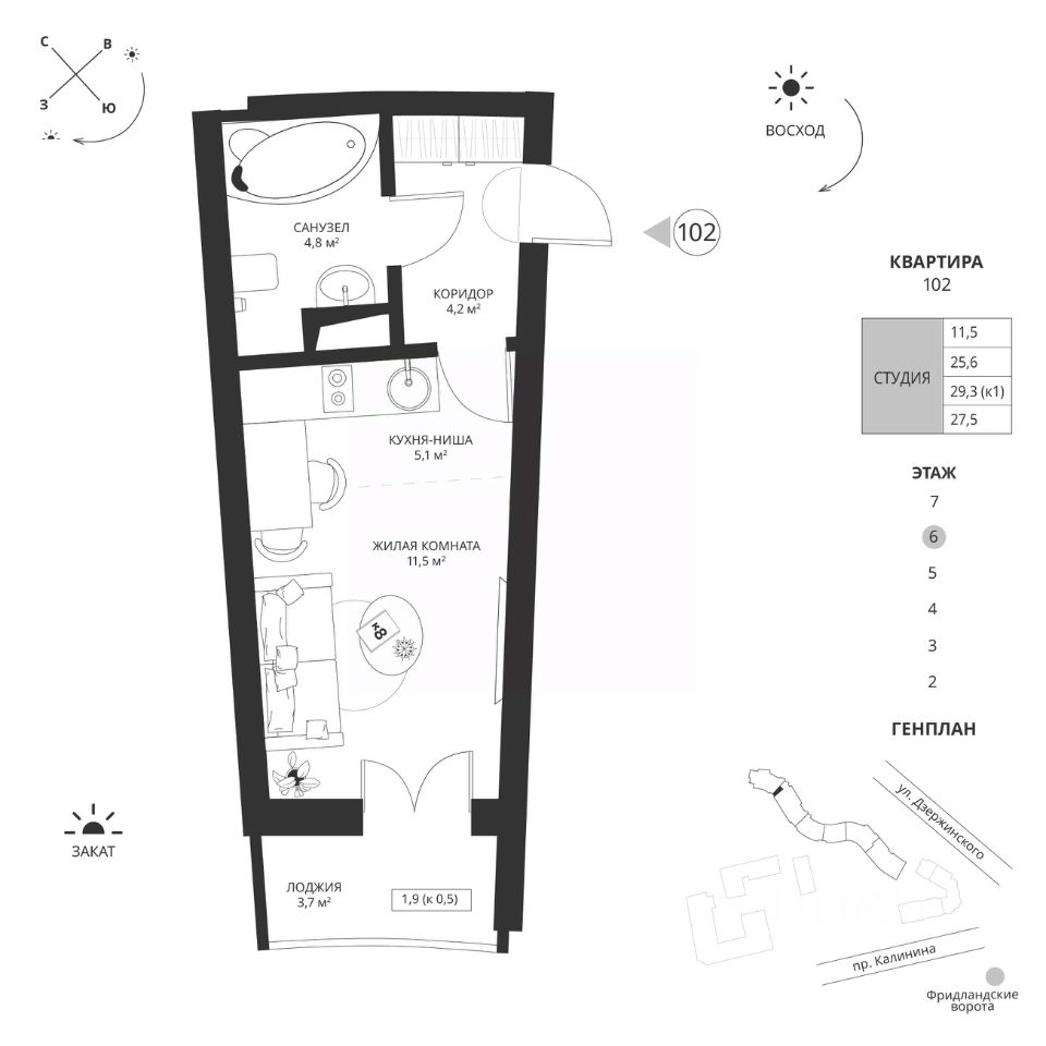 Общая площадь27,5 м²