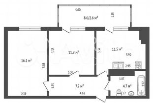 Площадь квартиры с лоджией 60 кв.м..