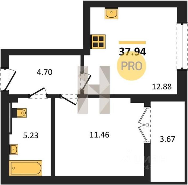 Квартира: 1 к 37,94 кв.м., 4 этаж в комплексе Включи, 5 очередь, корп.10, сдача: 3кв. , этажей: 7, адрес Гурьевск г., Героя России Катериничева ул., , Застройщик: ССК. Номер в базе: J31260L27205