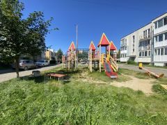 Придомовая территория благоустроенна, с детской площадкой и свободными парковочными местами.