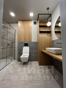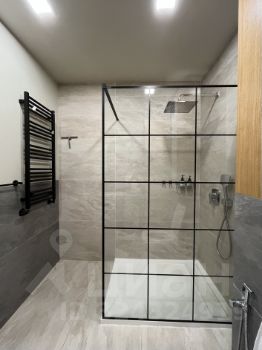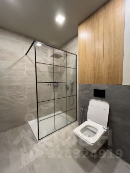 сантехника Villeroy & Boch, гигиенический душ, подвесной унитаз с инсталляцией, встроенная стиральная машина. На полу и стенах керамогранит. В спальных комнатах: