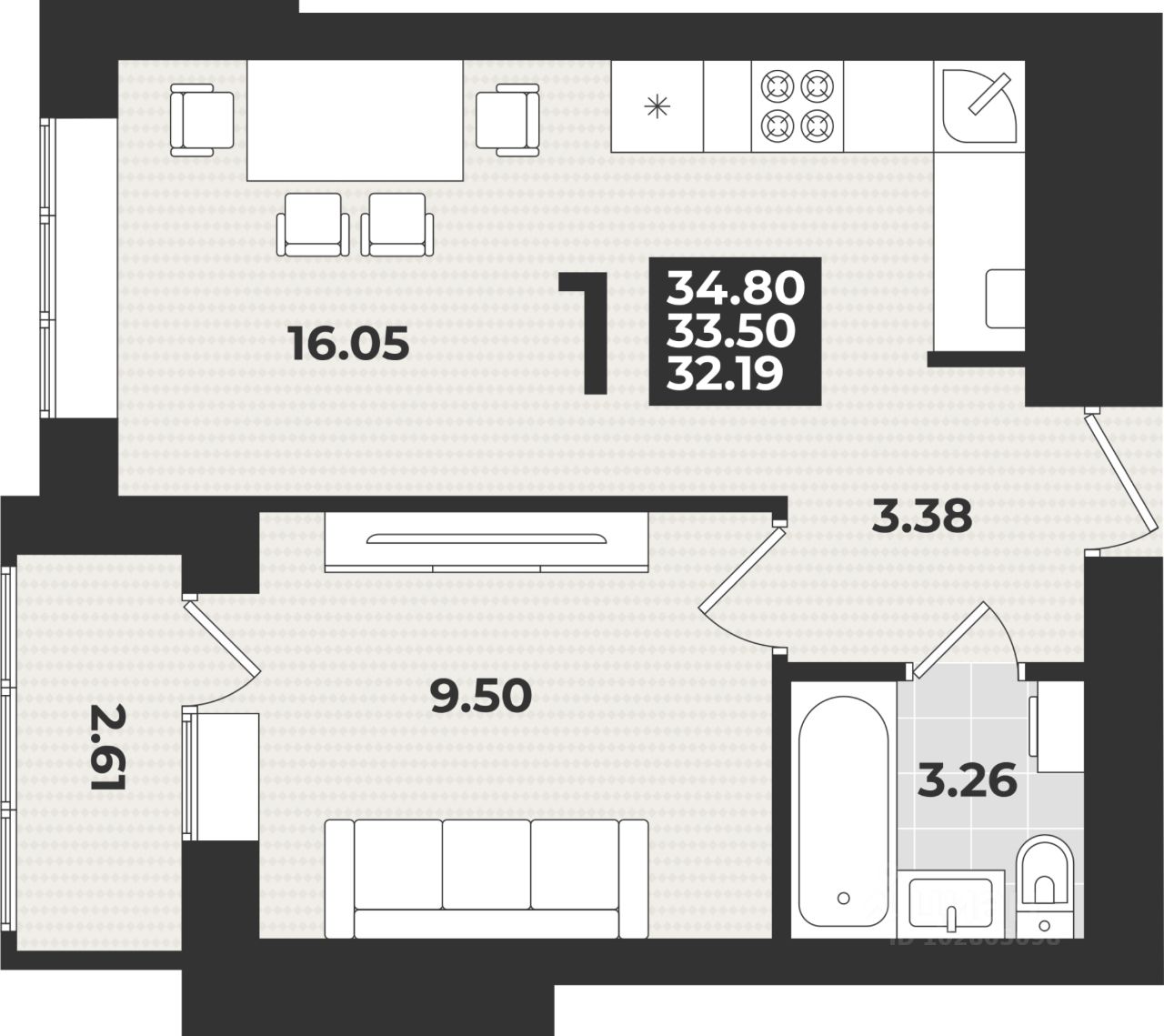 Однокомнатные, двухкомнатные и трёхкомнатные квартиры с панорамными окнами, лоджиями и отделкой "белый ключ". Квартиры с просторными кухнями-гостиными.