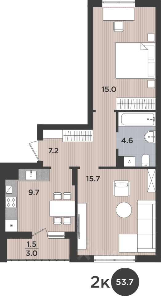 Квартира 50. Жилой комплекс Левада это место, где комфорт встречает функциональность, а стиль несет в себе простоту и уют.
