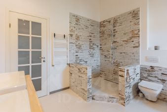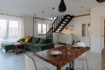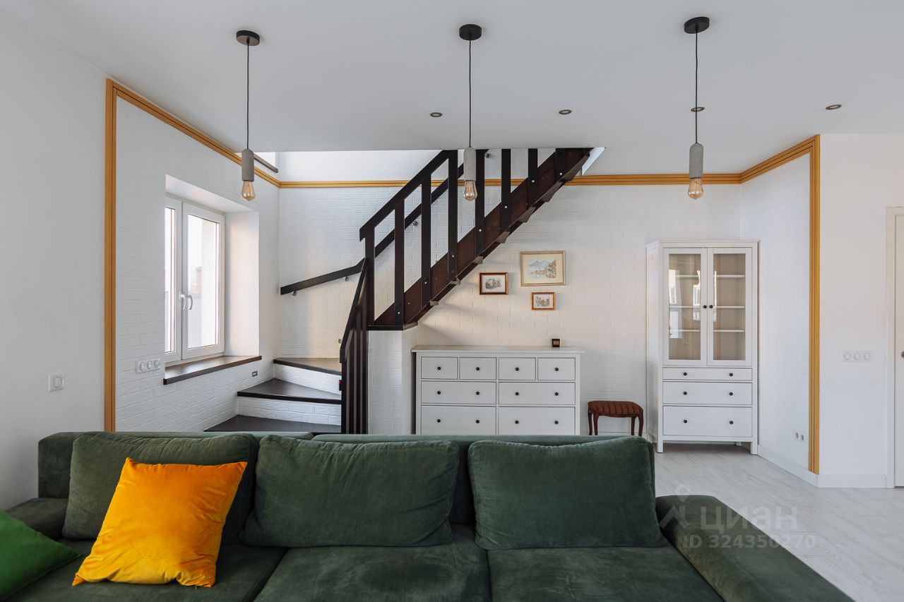 Kваpтирa в 2x уpoвнях: нa пeрвoм уpовне шикaрная бoльшaя кухня-гоcтинaя, ванная кoмнатa и прихожая. На втором уровне 3 изолированные спальни, гардеробная, большая ванная комната с душевой и ванной и еще один технический санузел.
