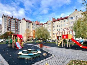 Тихий, ухоженный двор с новыми детскими и спортивными площадками.