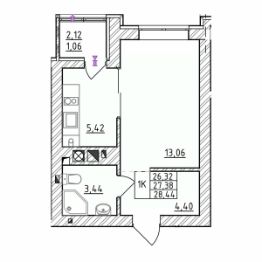 Продаётся 1-комнатная квартира в строящемся доме (Дом 2.2), срок сдачи: III-кв. 2026, общей площадью 28.44 кв.м., на 1 этаже. Новый жилой комплекс "Комфорт" от застройщика "СтройИнвестиция" расположен по адресу: г. Зеленоградск, посёлок Вишнёвое, Лесная улица.