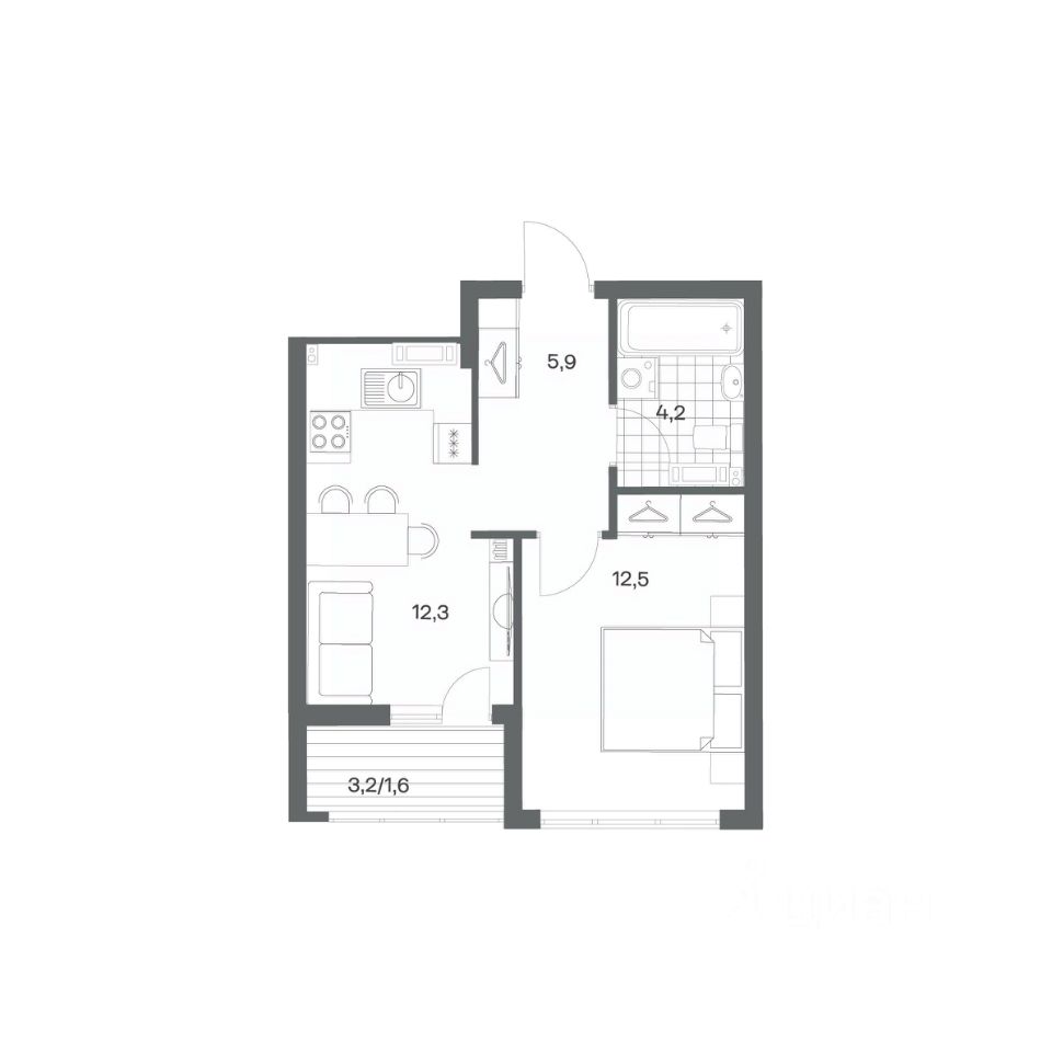 в Гагарина 30 от компании ГК "ТРЕСТ". Площадь кухни 12.3 м². Жилой комплекс комфорт-класса "Гагарина 30" расположен в Ленинградском районе Калининграда на улице Юрия Гагарина. Жилой комплекс включает в себя три корпуса высотой 9-18 этажей. Срок сдачи намечен на 1 квартал 2028 года.