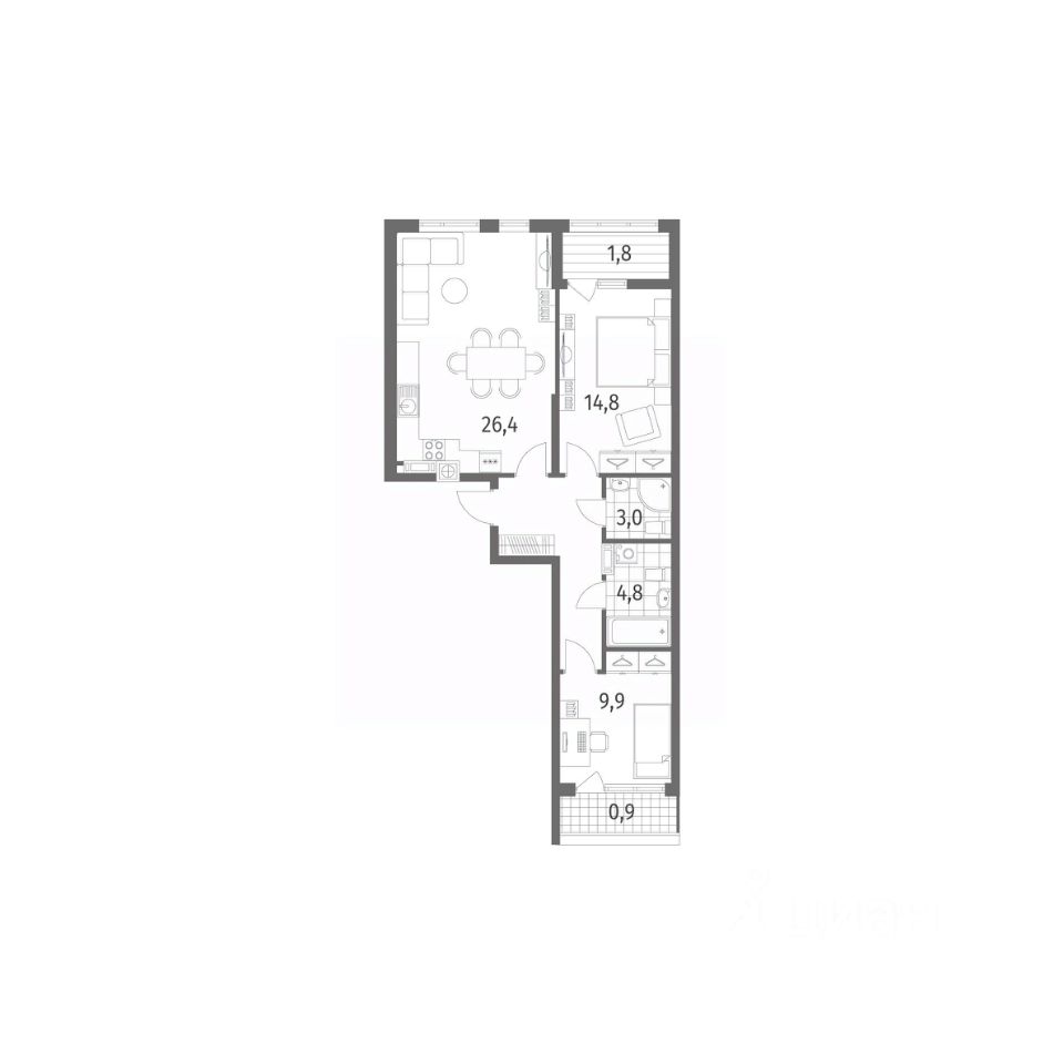 в Дом на Красной от компании ГК "ТРЕСТ". Площадь кухни 26.4 м². Жилой комплекс комфорт-класса "Дом на Красной" расположен в Центральном районе Калининграда на пересечении улиц Красная и Псковская. Жилой комплекс включает в себя два дома высотой 8 этажей. Срок сдачи намечен на 4 квартал 2026 года.