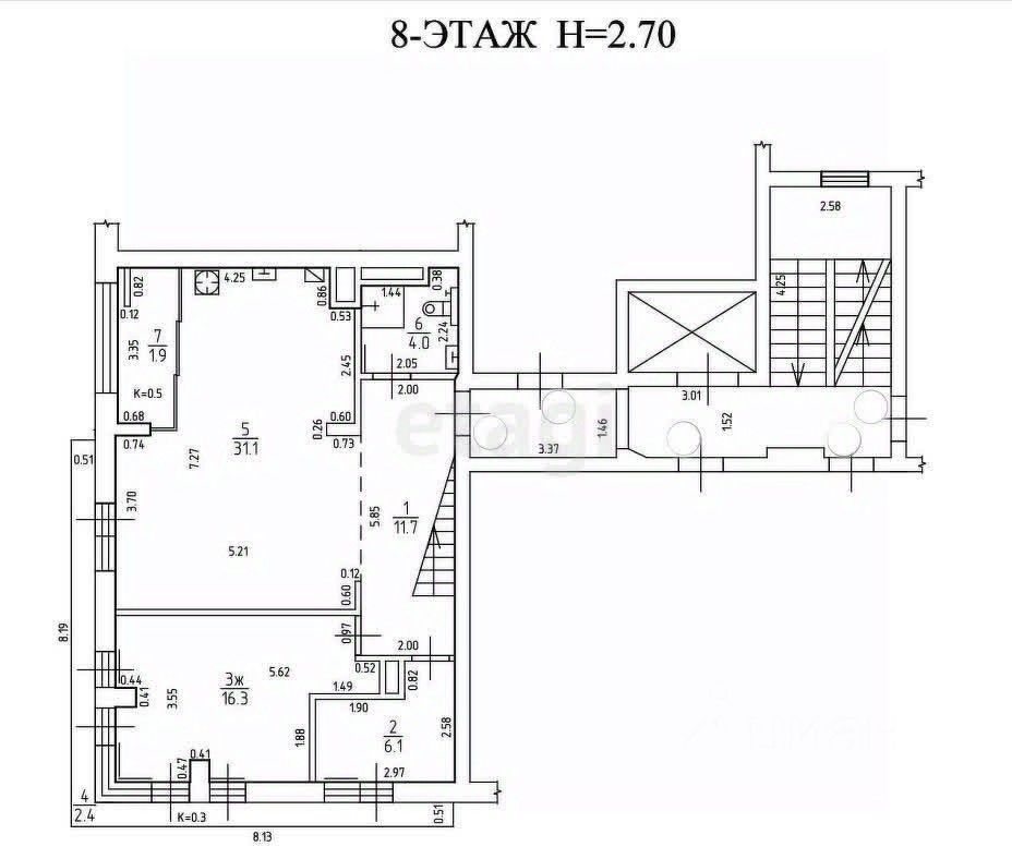 Квартира располагается на 8-ом и 9-ом этаже в 9-ти этажном доме. Площадь квартиры: 141,8 кв.м + открытая терраса на крыше 77 кв.м. + французский балкон 7,5 кв.м, 6 комнат, 2 уровня.