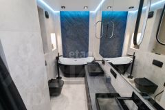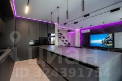 - Выполнен ремонт по дизайн проекту с использованием современных оригинальных решений, как то авторская "парящая" лестница на второй уровень, декоративные пано на стенах, натяжные потолки со световыми линиями и подсветкой, скрытые двери, дизайнерская сантехника в 3-х санузлах.