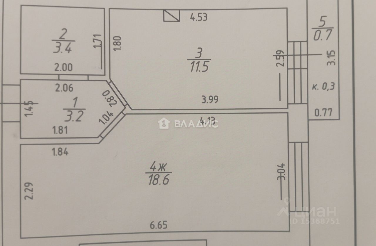 Общая площадь квартиры составляет 37,4 кв. м, из которых 18,6 кв. м — жилая площадь, а 11,5 кв. м — кухня. Высота потолков 2,7 метра. Окна с видом на частный сектор.