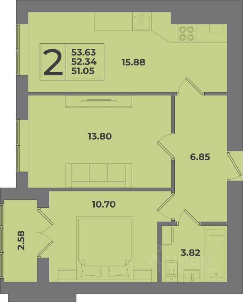 Общая площадь53,63 м²