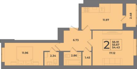 Общая площадь56,91 м²