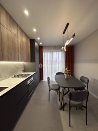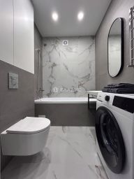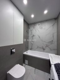 В квартире сделан дизайнерский ремонт с использованием качественных, дорогих стройматериалов. Кухня оснащена премиальной встроенной техникой: посудомоечная машина, микроволновка, духовка и варочная газовая панель фирмы BOSCH, холодильник, Gorenje, вытяжка Fabe. Рабочая зона кухни подсвечивается по всей её длине. Ванная комната с вместительной ванной, установлены испанские смесители Tres. Санузел совмещён. Тёплые полы в коридоре и в ванной.