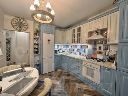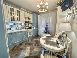 Дизайнерский ремонт выполнен с душой: каждая деталь продумана для создания атмосферы уюта, гармонии и домашнего тепла. Пространство кажется ещё больше благодаря высоким потолкам и продуманной планировке. Вся мебель и двери изготовлены из натурального дерева. Кухня оборудована всей необходимой техникой,включая посудомоечную и стиральную (с функцией сушки) машину. Теплые полы во всей квартире.Дорогая сантехника.