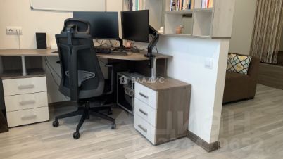 Комната: 20.5 м2. Зонированное спальное место с подъёмным механизмом + выделенное рабочее место, телевизор Хiаоmi.