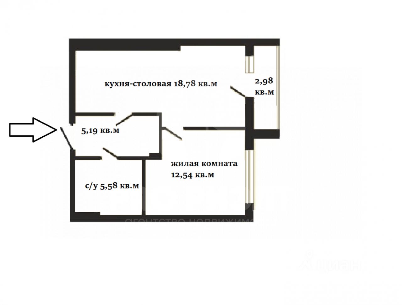Общая площадь: 42.5 кв.м.