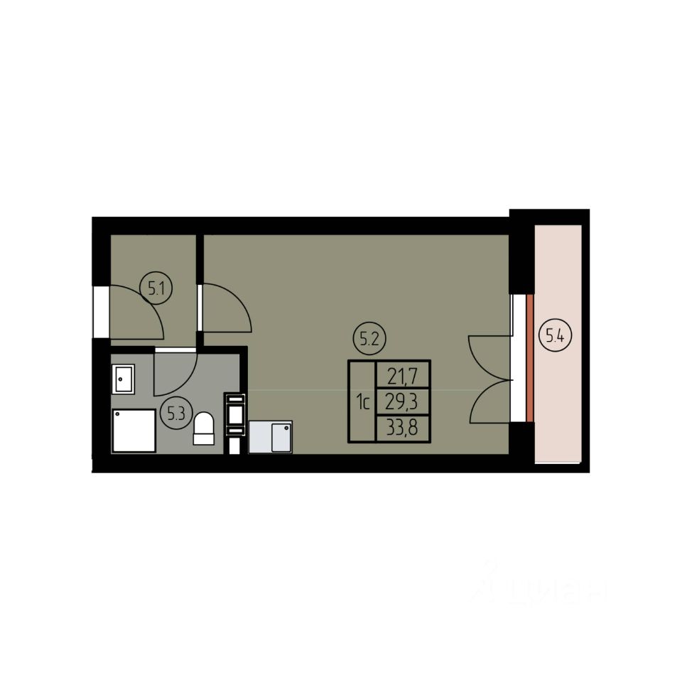 Общая площадь апартаментов: 33,9 м²